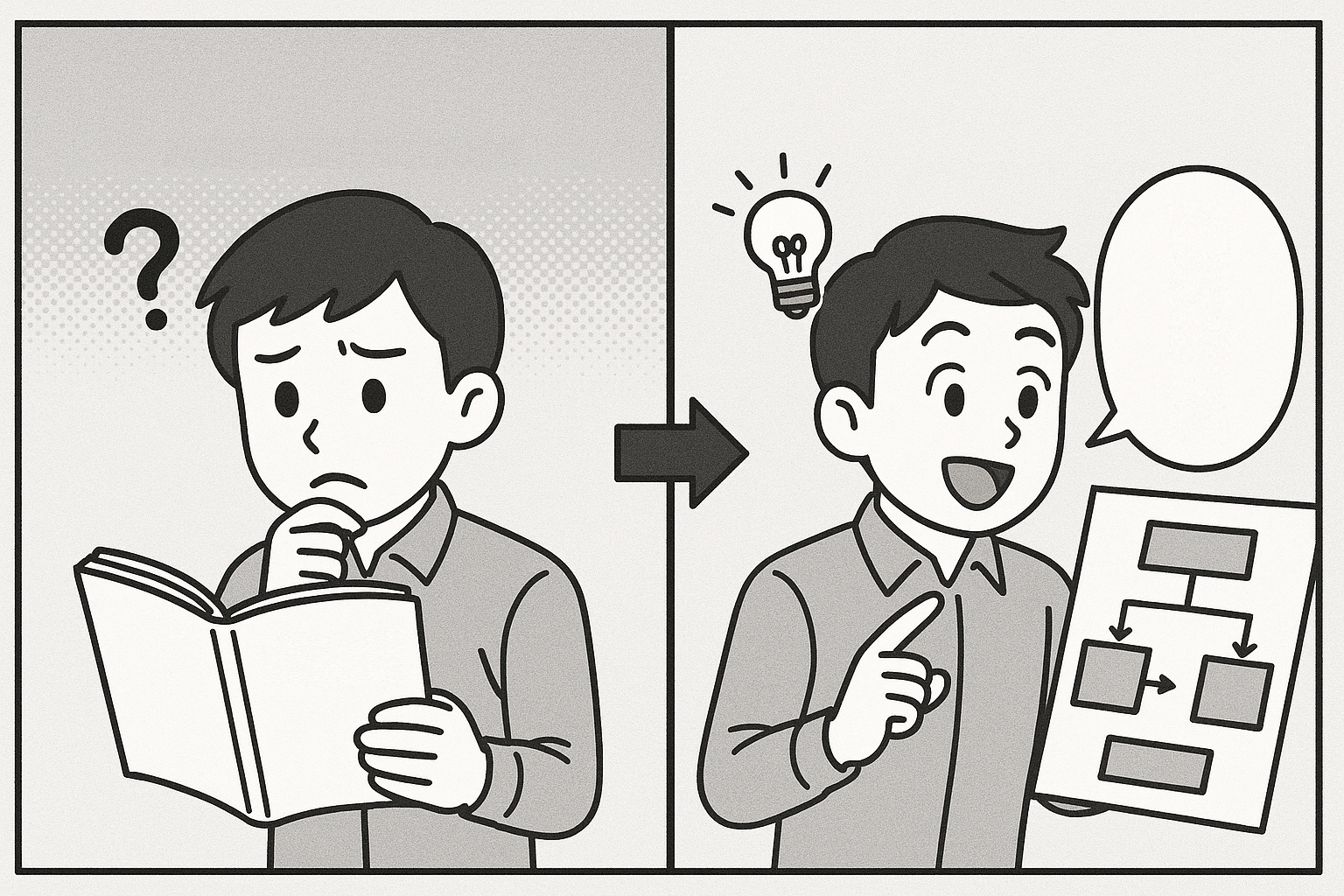 まずは既存のマニュアルを見直し、文字だけや写真だけに頼っている部分から図解を取り入れてみましょう。それだけで教育の効率や品質の安定に直結します。
